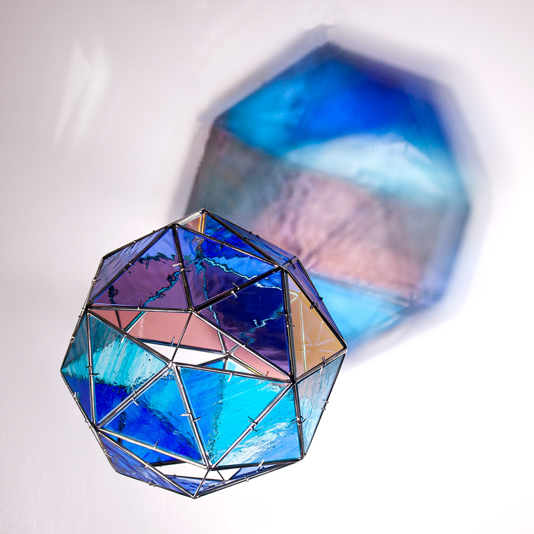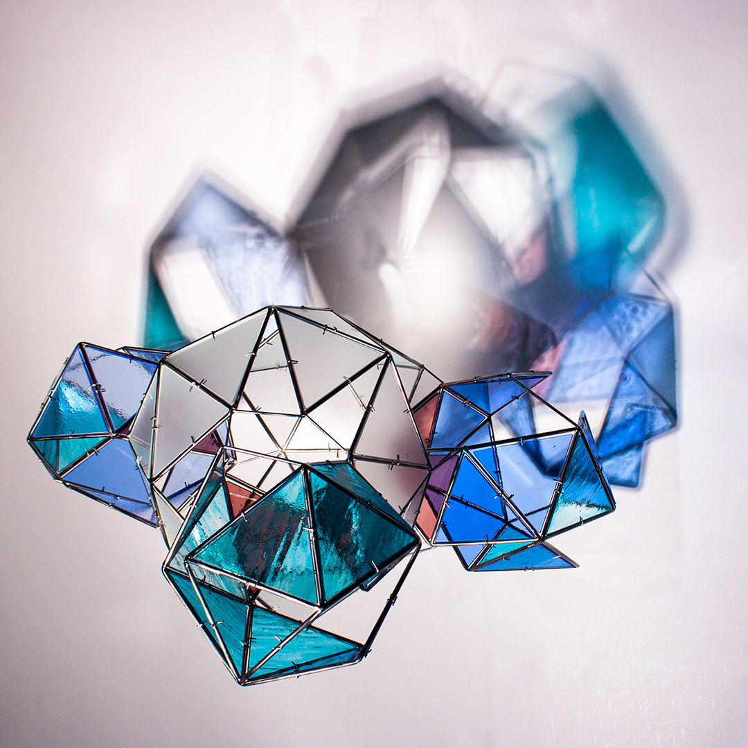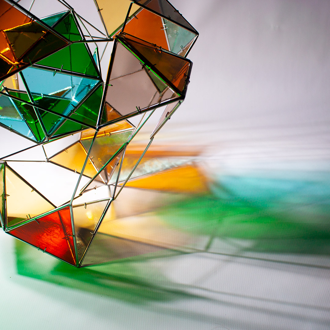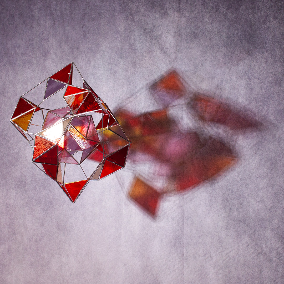 La colección está integrada por esculturas de acero inox en las que se encastran vidrios tintados tipo catedral, eludiendo el uso de plomo; las obras se presentan suspendidas en cercanía de superficies planas (techos, muros, suelo), para que, convenientemente iluminadas, reciban sus proyecciones.