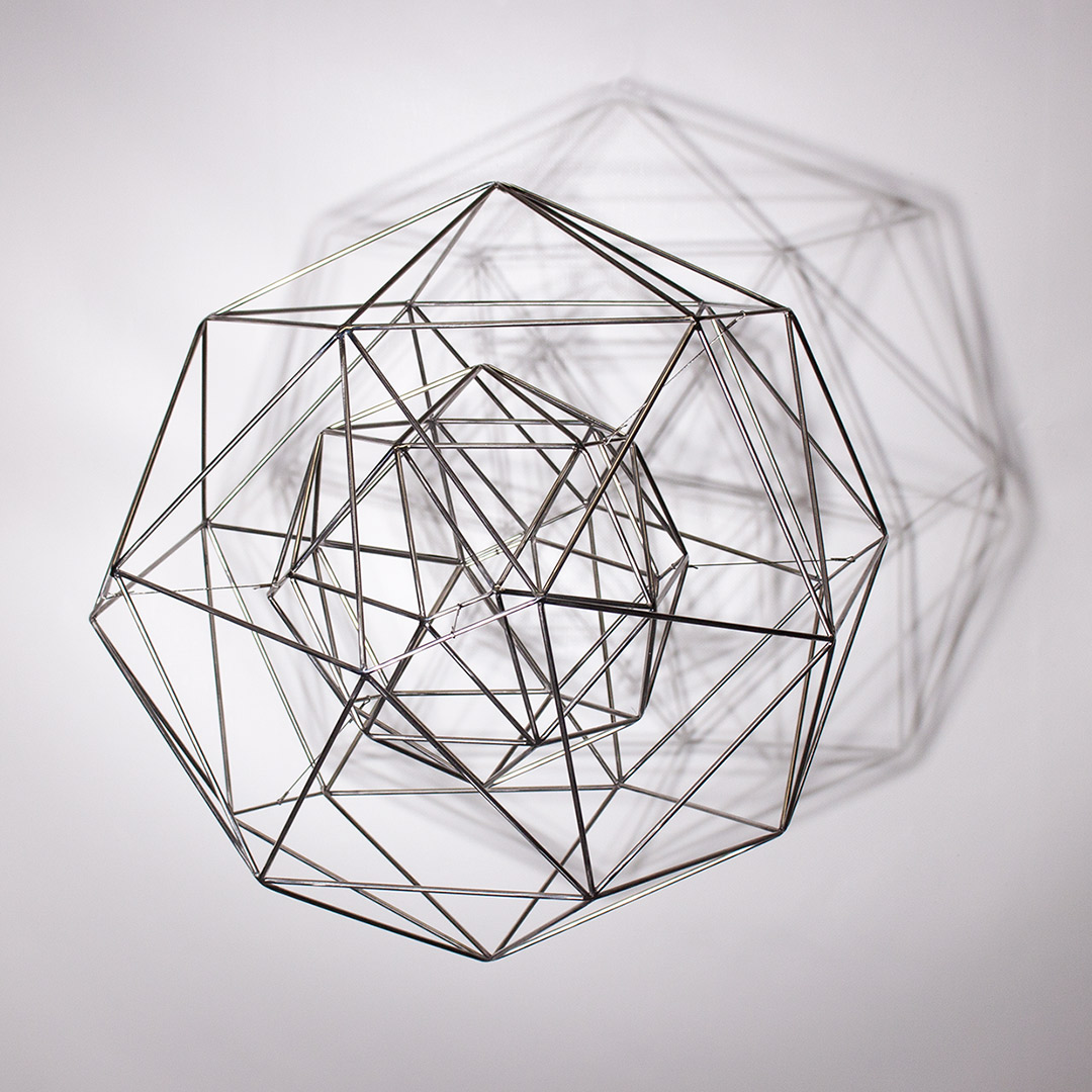 Las esculturas de la colección SELF están resueltas con una estructura alámbrica portante de acero inoxidable, en la que se encastran vidrios translúcidos de diferentes tipos. De suerte que, al iluminar las esculturas, se producen reflejos y proyecciones en su entorno próximo. Las obras finales son