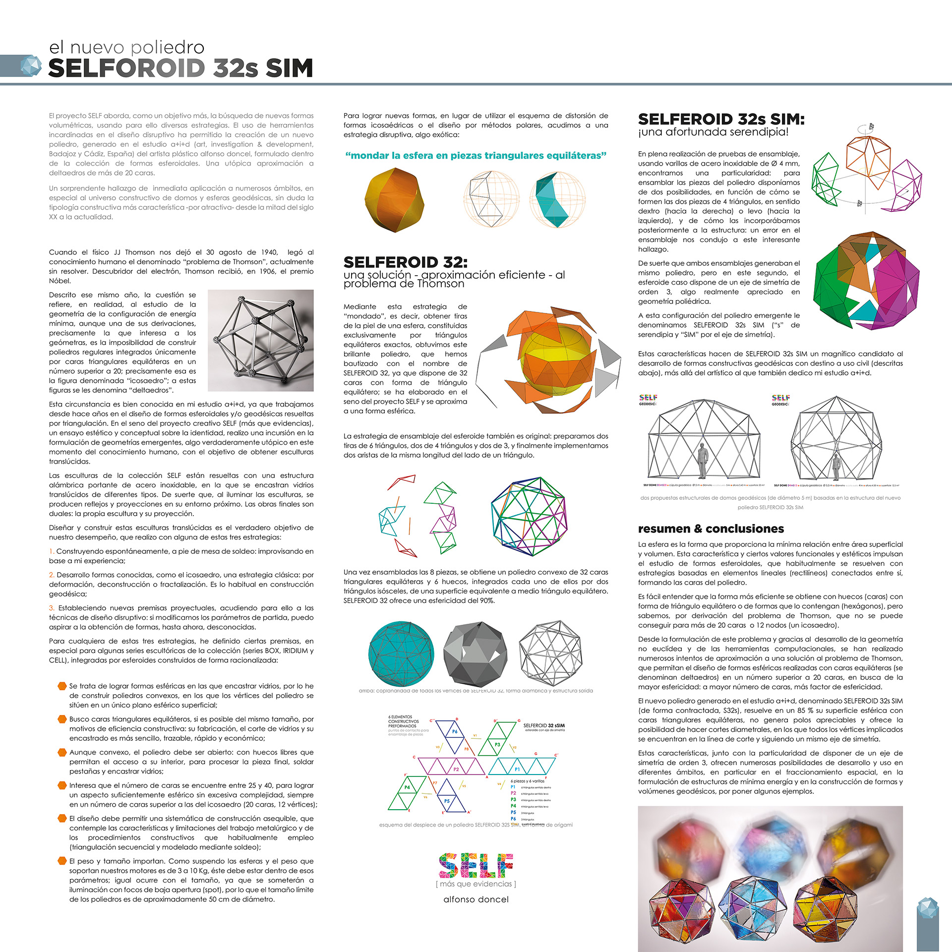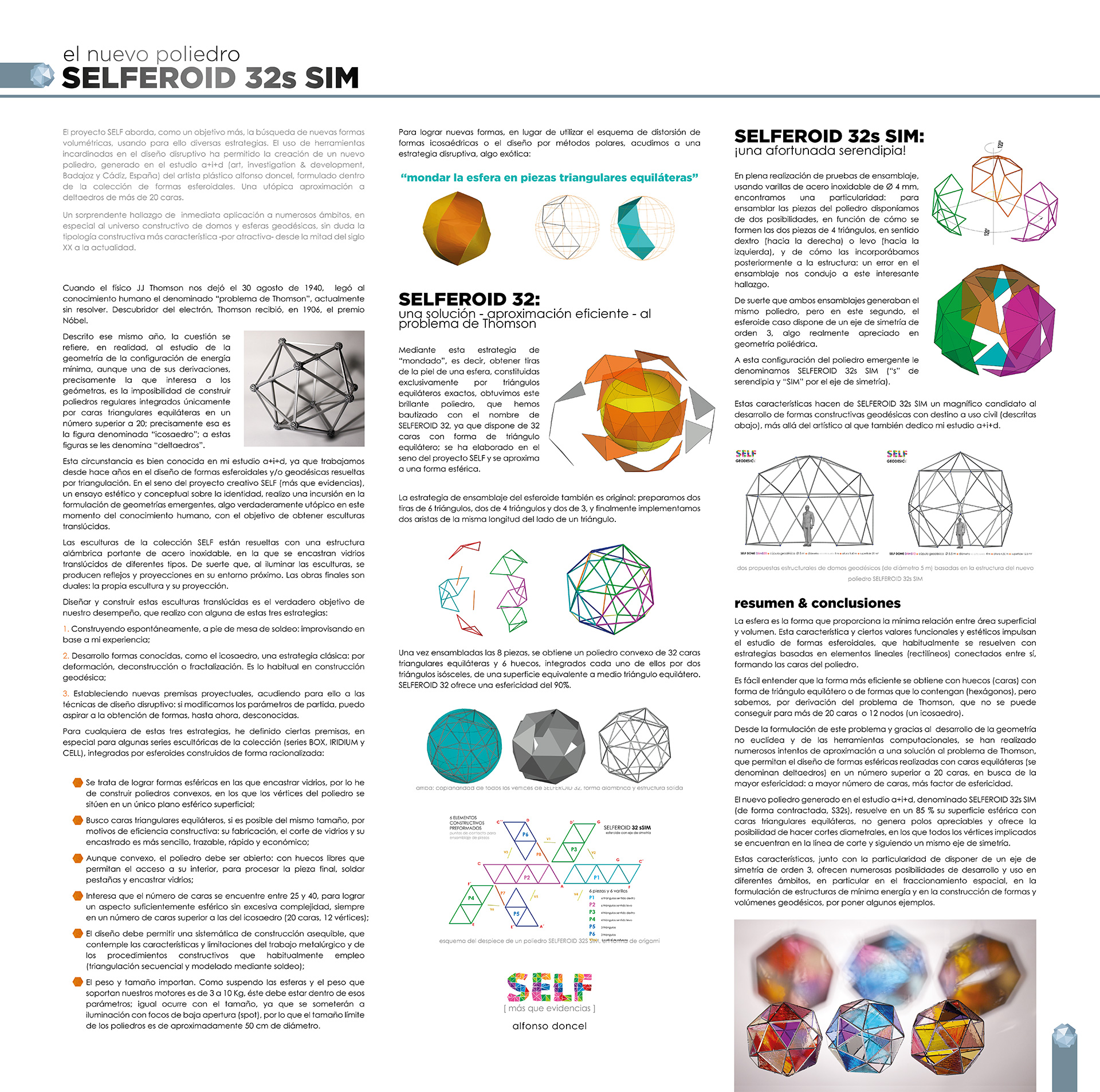El uso de herramientas incardinadas en el diseño disruptivo ha permitido la creación del nuevo poliedro S32, generado en mi estudio a+i+d (art, investigation & development, Badajoz y Cádiz, España), formulado dentro de la colección de formas esferoidales SELF, aproximadas a utópicos deltaedros de más de 20 caras. Una sorprendente solución de inmediata aplicación a numerosos ámbitos, en especial al universo constructivo de domos y esferas geodésicas, sin duda la tipología constructiva más característica -por atractiva- desde la mitad del siglo XX a la actualidad.
